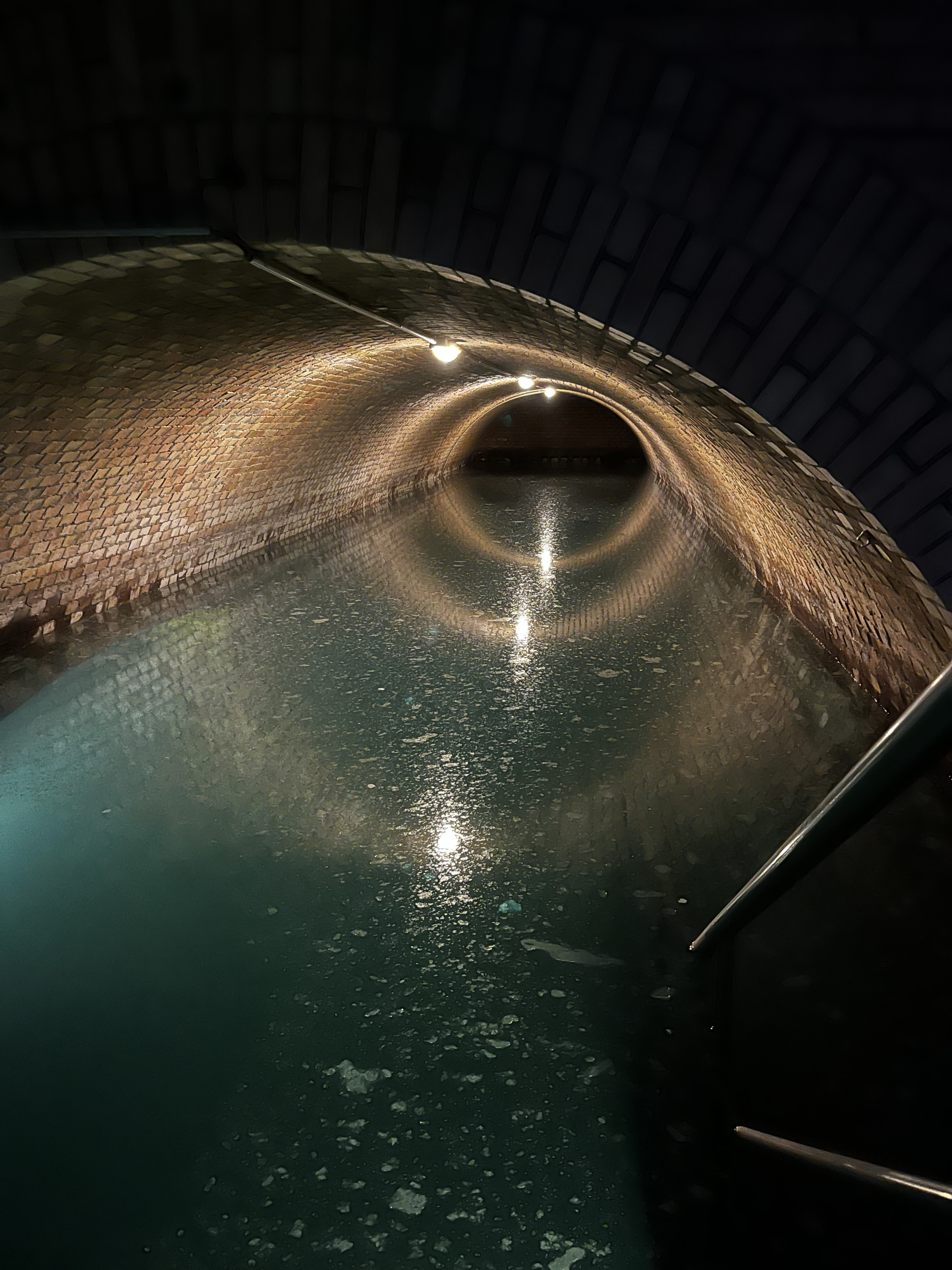 Darmstadt's population multiplied during the years of industrial growth and economic boom and required a modern water supply system. The engineer Otto Lueger, who was experienced in such constructions, was commissioned with the planning. The necessary water reservoir was completed in 1880 on the Mathildenhöhe, the highest elevation close to the city. The structure, which was used until 1994, forms the substructure of the exhibition building and is considered a technical monument.