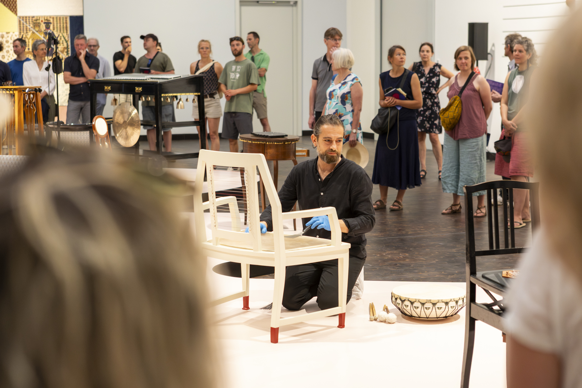 Aktivierung der Klangskulpturen durch Musiker*innen in der Ausstellung